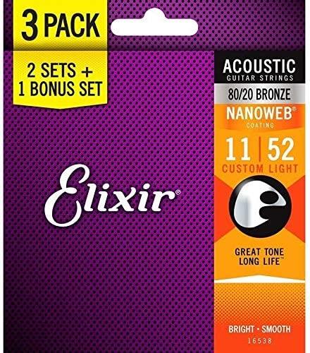 Elixir Acoustic Guitar Strings 11-52 Nanoweb 3 Pack
